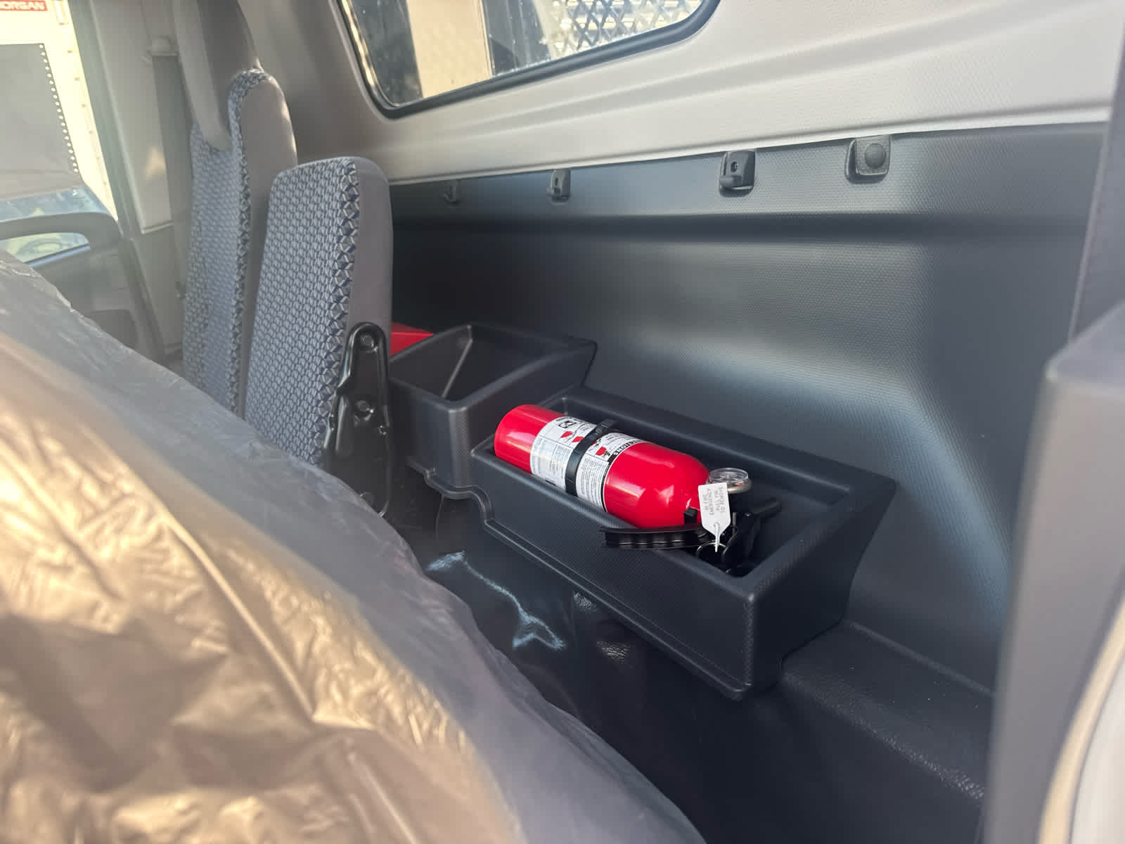 - PIO, Fire extinguisher and safety triangle, includes storage/mounting provisions (Port Installed Option)