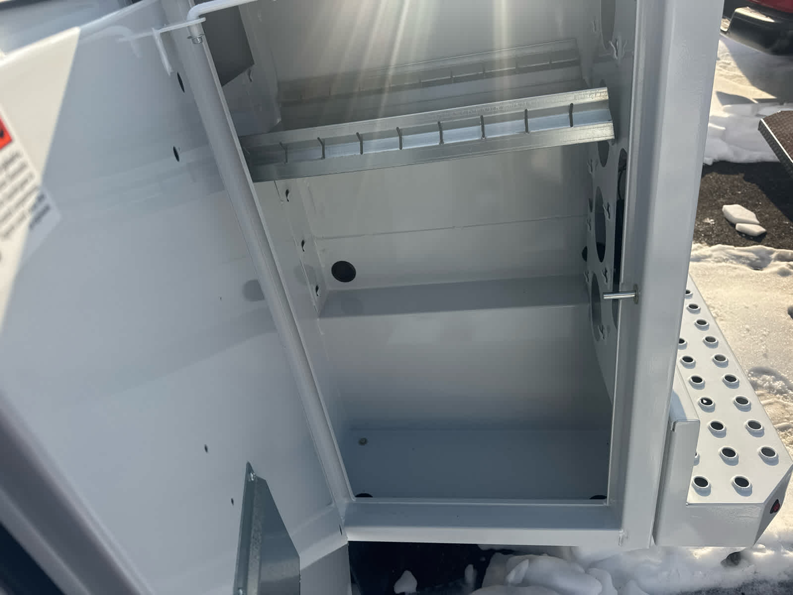 - Black textured step pads help provide secure footing