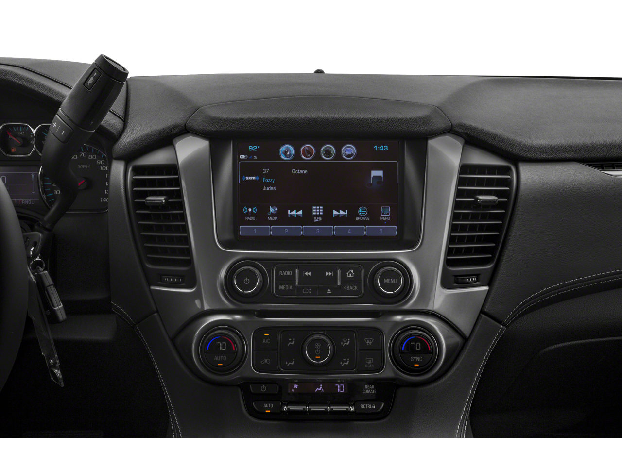 SUN, ENTERTAINMENT AND DESTINATIONS PACKAGE, (CF5) power sunroof, (U42) rear seat DVD entertainment system and (IO6) Chevrolet MyLink radio with navigation, LUXURY PACKAGE includes additional 9 months of SiriusXM Radio, (AS8) power fold third row 60/40 split bench seats, (ATH) Passive Entry System, (ATT) second row power release 60/40 split folding bench seat, (BTM) keyless start, (DL3) outside heated power-adjustable, power-folding mirrors, (KA6) heated second row seats, (N38) memory power tilt and telescopic steering column, (TC2) Hands free liftgate, (T3U) fog lamps, (UD5) Front and Rear Park Assist, (UFG) Rear Cross-Traffic Alert, (UKC) Lane Change Alert with Side Blind Zone Alert and (UVD) heated steering wheel and color key rear fascia trailer hitch closeout, RST EDITION includes (SGK) 22" Gloss Black aluminum wheels with custom silver inserts, (P3H) front and rear black bowties, unique Gloss Black Sport grille with body-color surround, body-color door handles and headlamp accents, Black mirror caps, beltline moldings and roof rails and Black nameplate badging, ENTERTAINMENT SYSTEM, REAR SEAT, BLU-RAY/DVD with remote control, overhead display, Wi-Fi wireless projection capability, two 2-channel wireless digital headphones, auxiliary HDMI/MHL audio/video input and 2 USB ports, SEATS, SECOND ROW BUCKET, POWER RELEASE, AUDIO SYSTEM, CHEVROLET MYLINK RADIO WITH NAVIGATION AND 8" DIAGONAL COLOR TOUCH-SCREEN AM/FM stereo with seek-and-scan and digital clock, includes Bluetooth® streaming audio for music and select phones; voice-activated technology for radio and phone; and Shop with the ability to browse, select and install apps to your vehicle. You can customize your content with audio, weather and more; featuring Apple CarPlay® and Android Auto® capability for compatible phone; 5 USB ports and 1 auxiliary jack, MIRRORS, OUTSIDE HEATED POWER-ADJUSTABLE, POWER-FOLDING AND DRIVER-SIDE AUTO-DIMMING with integrated turn signal indicators and ground illumination, ENGINE, 5.3L ECOTEC3 V8 WITH ACTIVE FUEL MANAGEMENT, DIRECT INJECTION AND VARIABLE VALVE TIMING includes aluminum block construction (355 hp [265 kW] @ 5600 rpm, 383 lb-ft of torque [518 N-m] @ 4100 rpm) (STD), TRANSMISSION, 6-SPEED AUTOMATIC, ELECTRONICALLY CONTROLLED with overdrive and tow/haul mode (STD), STEERING WHEEL, HEATED, LEATHER-WRAPPED AND COLOR-KEYED with theft-deterrent locking feature.