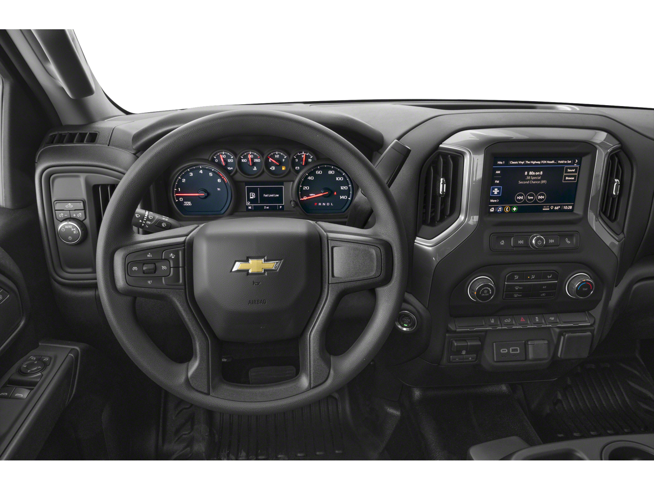 WT CONVENIENCE PACKAGE includes (QT5) EZ Lift power lock and release tailgate, (AKO) tinted windows, (C49) rear-window defogger, (K34) cruise control, CHEVYTEC SPRAY-ON BEDLINER Black (does not include spray-on liner on tailgate due to Black composite inner panel), MIRRORS, OUTSIDE POWER-ADJUSTABLE VERTICAL TRAILERING WITH HEATED AND AUTO-DIMMING UPPER GLASS lower convex mirrors, turn signal indicators, puddle lamps, perimeter lighting, auxiliary lighting, power folding/manual extending (extends 3.31" [84.25mm]) Includes (DD8) auto-dimming rearview mirror. REAR PARK ASSIST, GLASS, DEEP-TINTED, AUDIO SYSTEM, CHEVROLET INFOTAINMENT 3 SYSTEM 7" diagonal HD color touchscreen, AM/FM stereo, Bluetooth® audio streaming for 2 active devices, voice command pass-through to phone, Wireless Apple CarPlay® and Wireless Android Auto® compatibility (STD), ENGINE, 6.6L V8 with Direct Injection and Variable Valve Timing, gasoline, (401 hp [299 kW] @ 5200 rpm, 464 lb-ft of torque [629 N-m] @ 4000 rpm) (STD), TRANSMISSION, ALLISON 10-SPEED AUTOMATIC (STD).